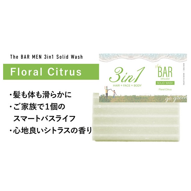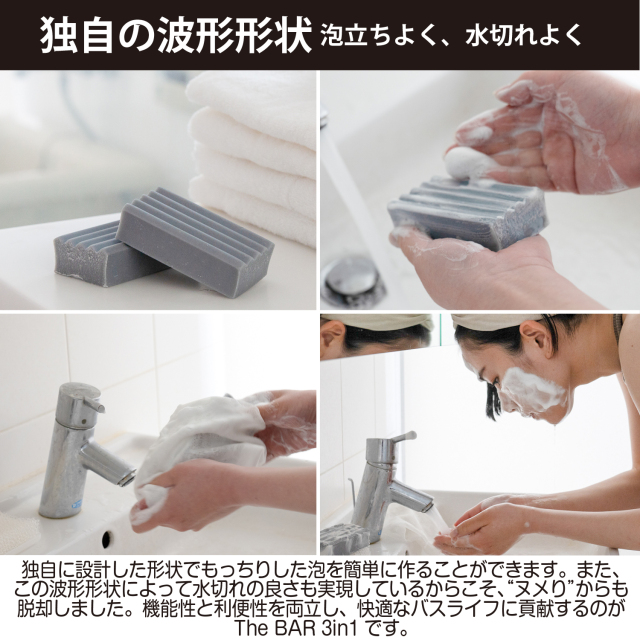 The BAR 3in1は髪・顔・身体、全身ウォッシュを実現した固形洗浄料。