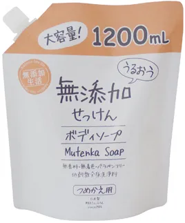 余分なものを極力抑えて、うるおいながら洗う、洗い上がりしっとりの無添加ボディソープです。うるおい成分グリセリン・ツバキ種子油配合しています。